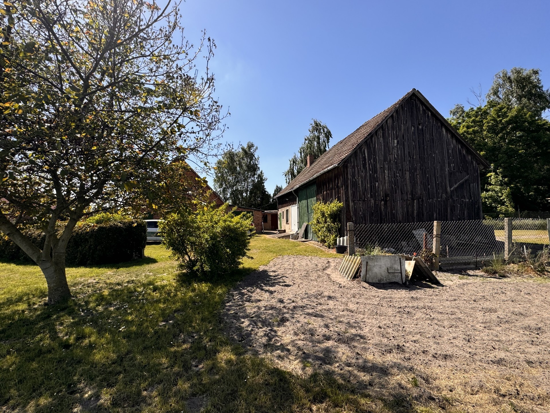 Zusätzlich befinden sich auf dem Grundstück eine große Scheune mit integriertem Kartoffelkeller sowie ein massiver Schuppen. Beide Gebäude bieten ausreichend Raum, um auch Haustiere artgerecht unterzubringen oder sie als Werkstatt und Lagerfläche zu nutzen.