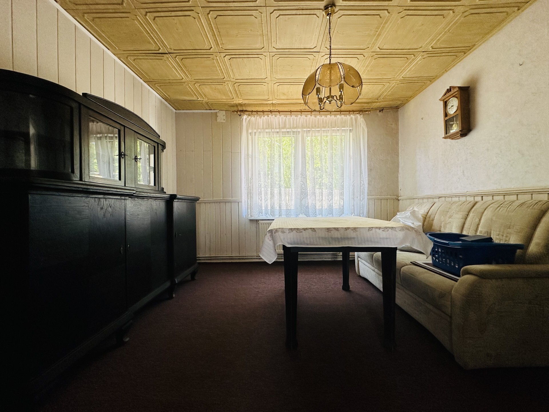 Die Wohnfläche umfasst etwa 90 m² und verteilt sich auf vier Zimmer. Die Küche ist das Herzstück des Hauses und verbindet den Flur, ein separates Zimmer, das Durchgangszimmer sowie den Außenbereich miteinander. Zwei Räume sind mit traditionellen Kachelöfen ausgestattet, zusätzlich sorgt eine 2013 erneuerte Gaszentralheizung für Wärme. Auch sind bis auf in der Küche und im Bad, bereits doppelverglaste Kunststofffenster eingesetzt worden.