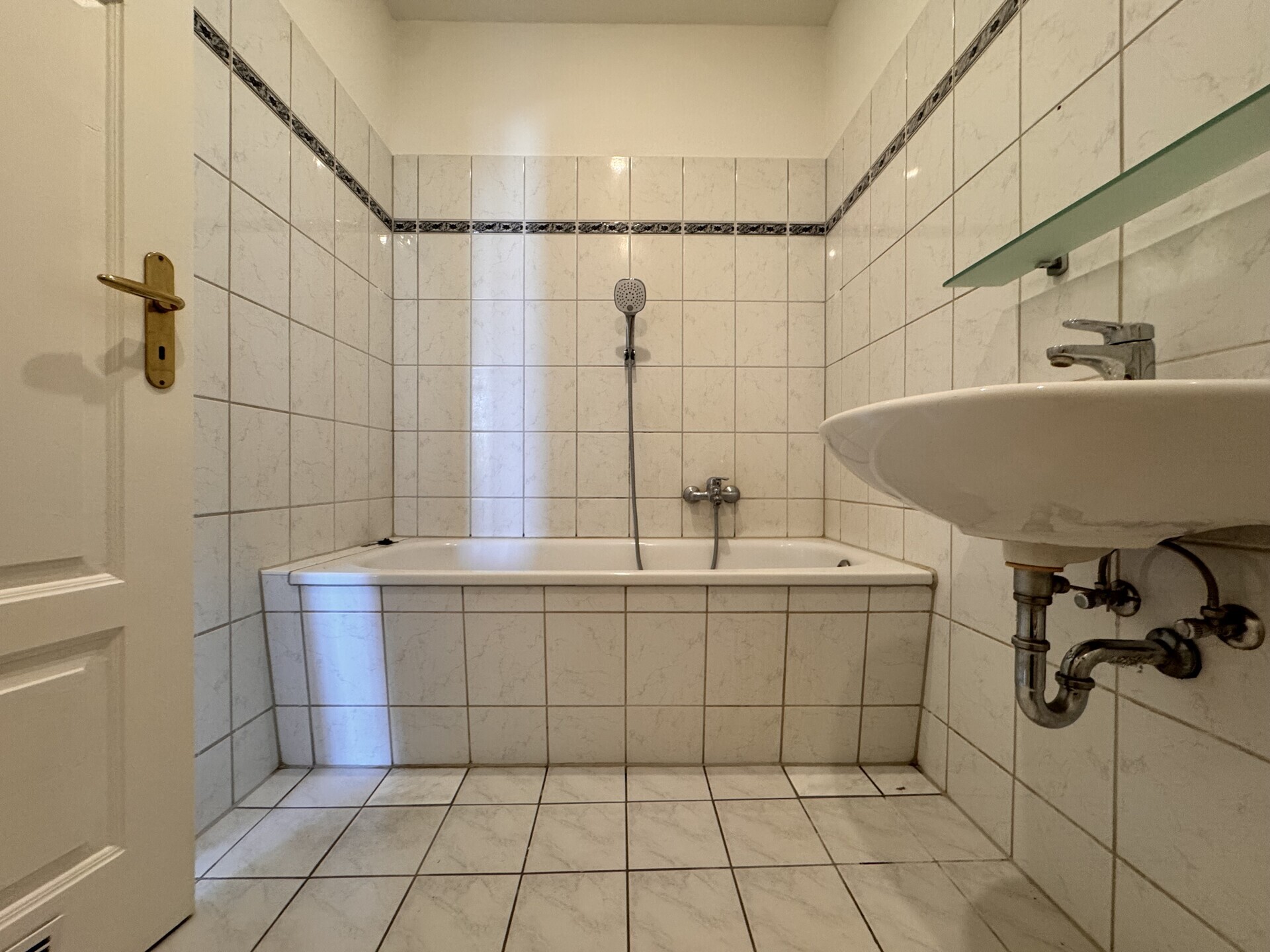 Die Wohnküche verfügt über ein großes Fenster mit Blick auf die Werft und den ruhigen Innenhof. Das Badezimmer ist mit einer Badewanne ausgestattet. Eine Einbauküche ist vorhanden.