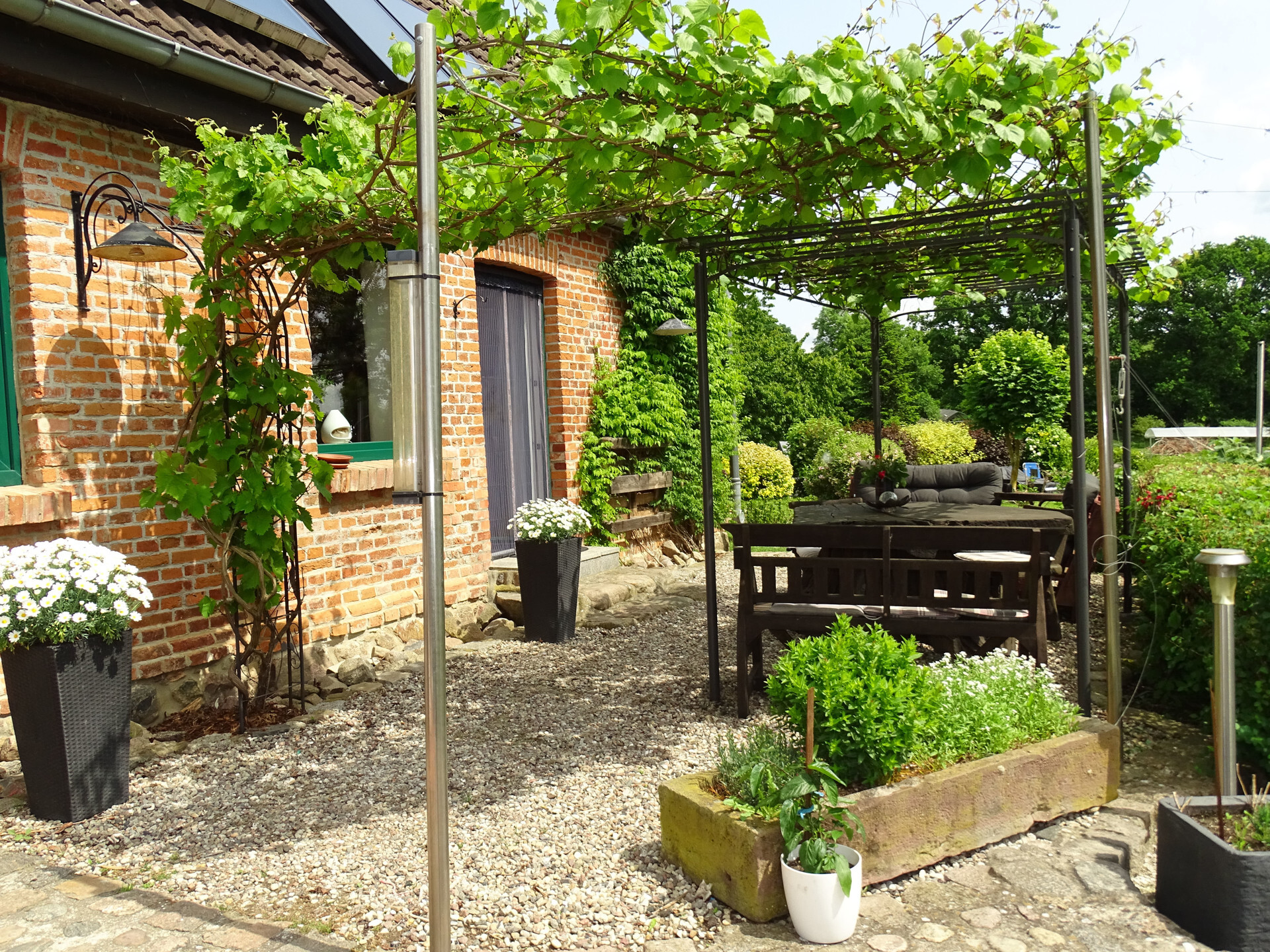 Das Haus verfügt über vier schöne Terrassen, die je nach Tageszeit zum Verweilen einladen. Ein besonderes Highlight ist das Heizsystem: Ein moderner Ofen aus dem Jahr 2010 versorgt das gesamte Haus. In jedem Raum findet sich entweder ein Kachelofen oder ein Heizkörper, der über den zentralen Ofen betrieben wird – gemütlich und effizient zugleich, aber auch nachhaltig durch den Energieträger Holz. Im Jahr 2024 wurde ein großer Warmwasserspeicher eingebaut, welcher durch eine kleine PV-Anlage ergänzt wurde. Diese dient nur der Warmwasseraufbereitung.