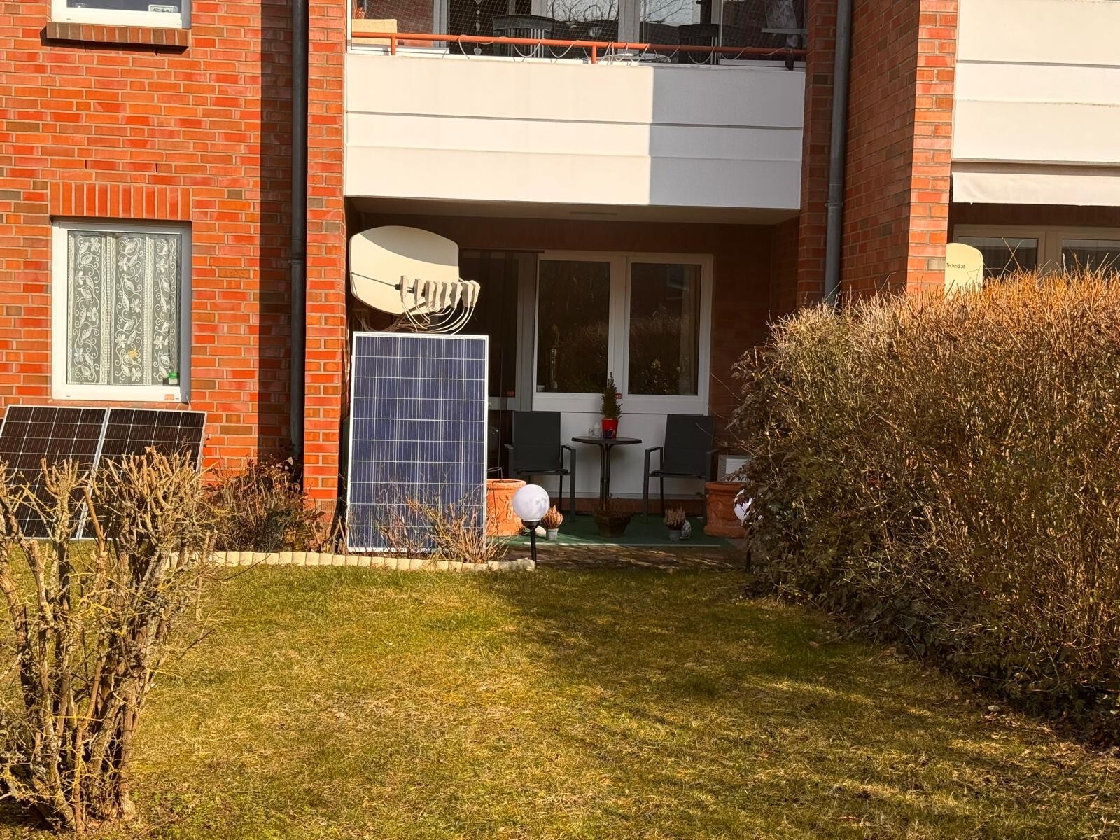 Die schöne Erdgeschosswohnung besticht durch einen großen Eingangsbereich, von dem aus alle Zimmer sowie die Küche und das Bad zugänglich sind. Vom Wohnzimmer aus gelangt man auf die Terrasse und auf das Grundstück, welches mit hübschen Sträuchern umgeben ist, und so Sichtschutz zu den Nachbarn gewährt.